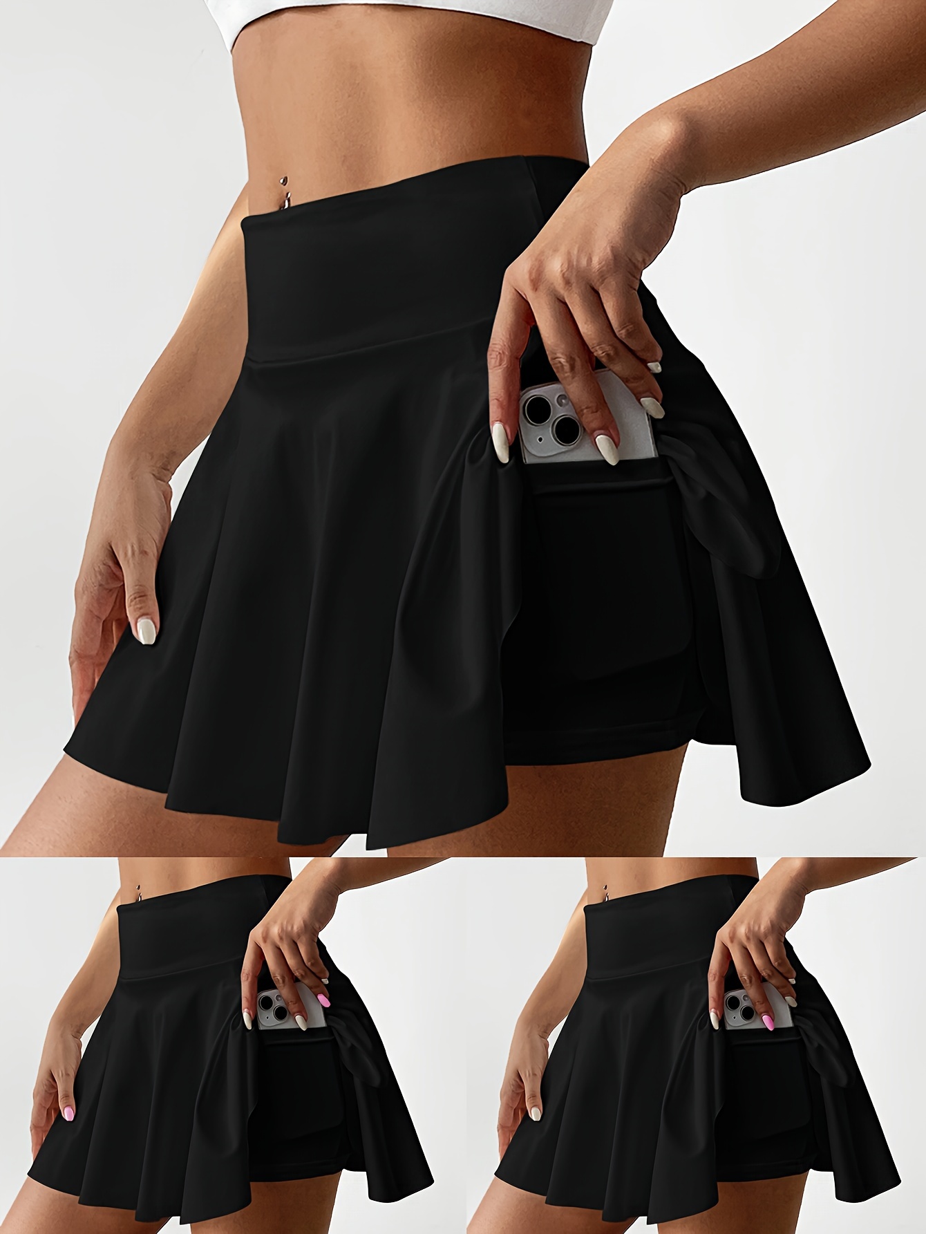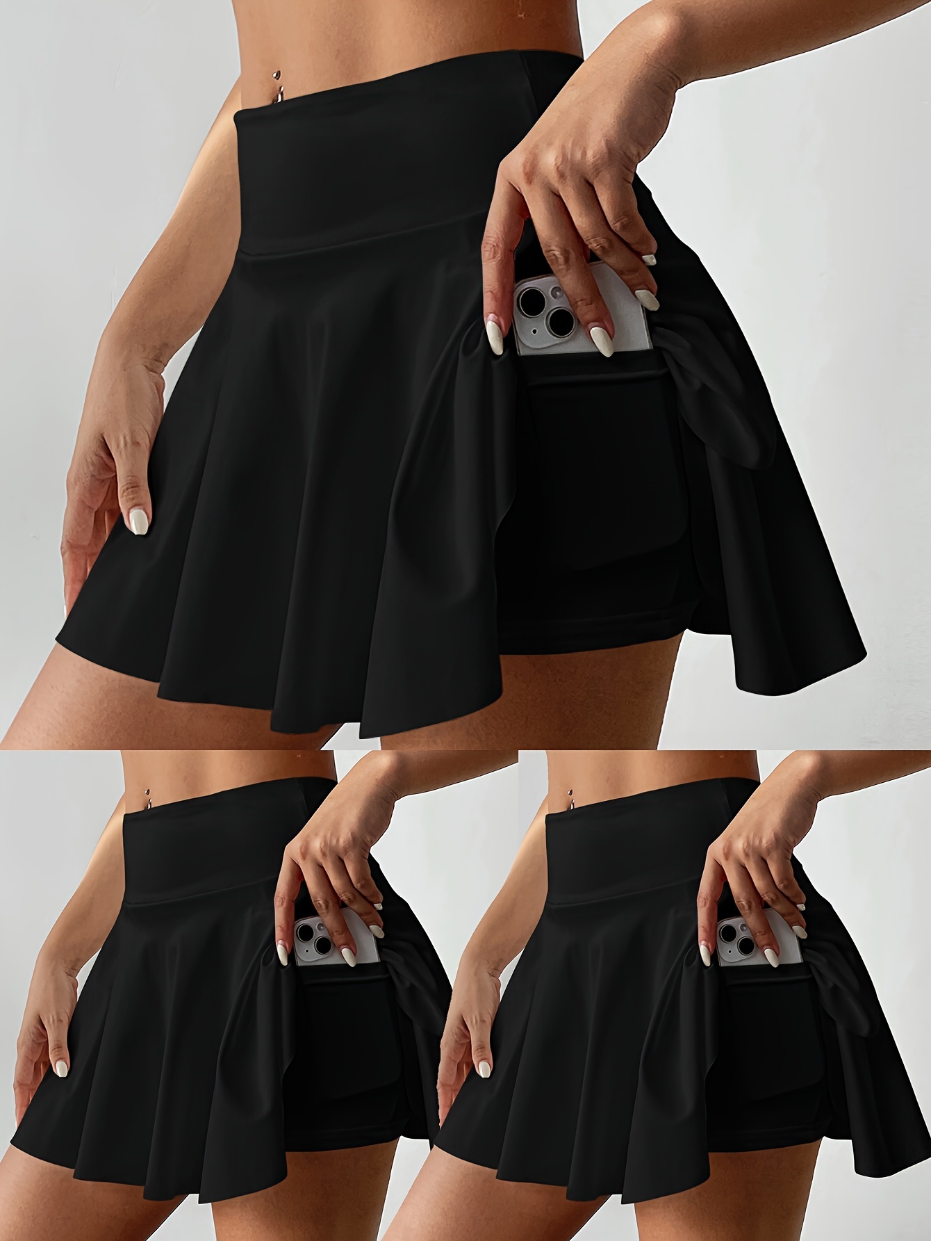 Women’s Solid Color Sports Skorts with Phone Pocket – Perfect for Tennis, Golf, Yoga – Comfortable and Stylish Activewear