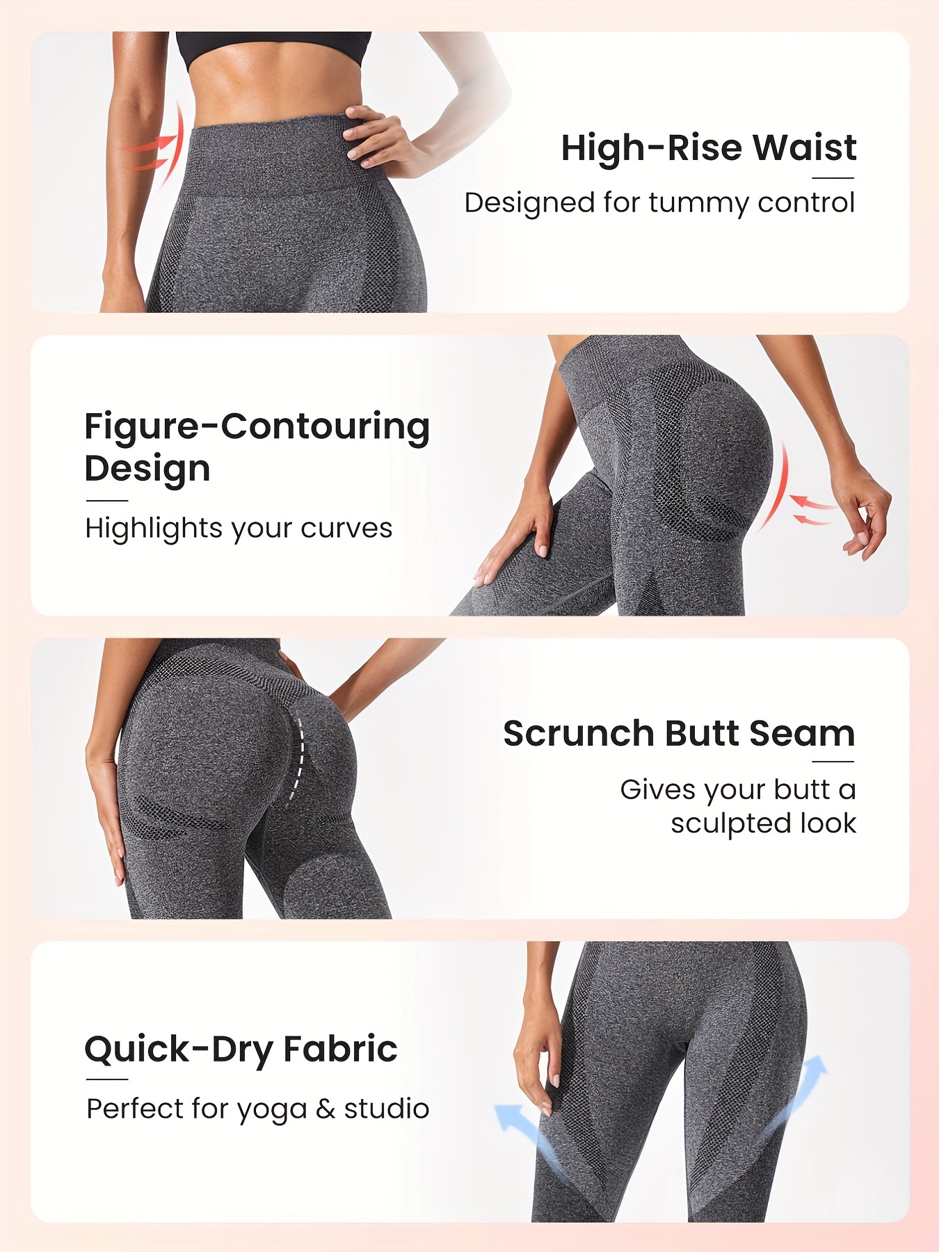 Solid Color Yoga Sports Leggings, Seamless Workout Gym Fitness Running Tight Pants, Women’s Activewear