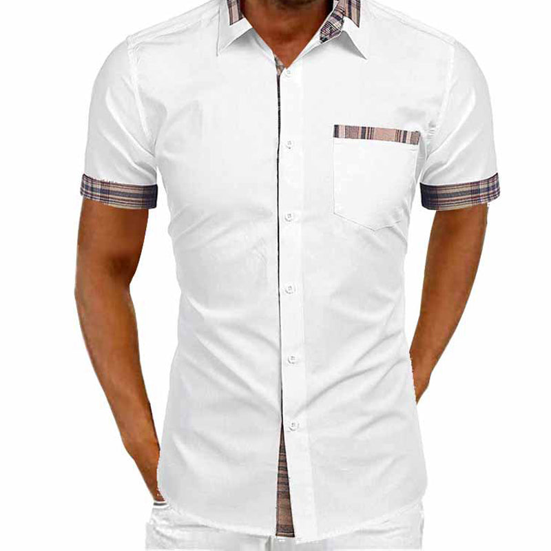 Men’s Cotton Linen Embroidered Lapel Short Sleeve Shirt