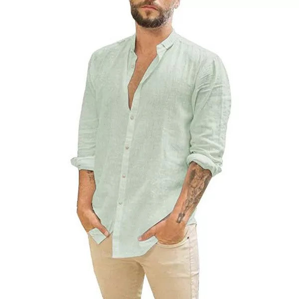Men’s Grey Cotton Linen Loose Shirt