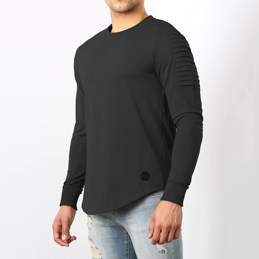 Men’s Round Neck Solid Wrinkled Raglan Sleeve Pullover Shirt