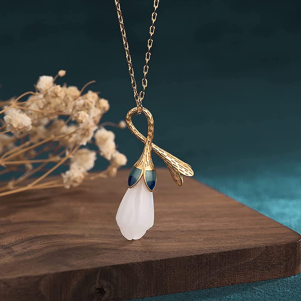 Lucky Magnolia White Jade Burnt Blue Pendant Necklace $23.99 $11.99