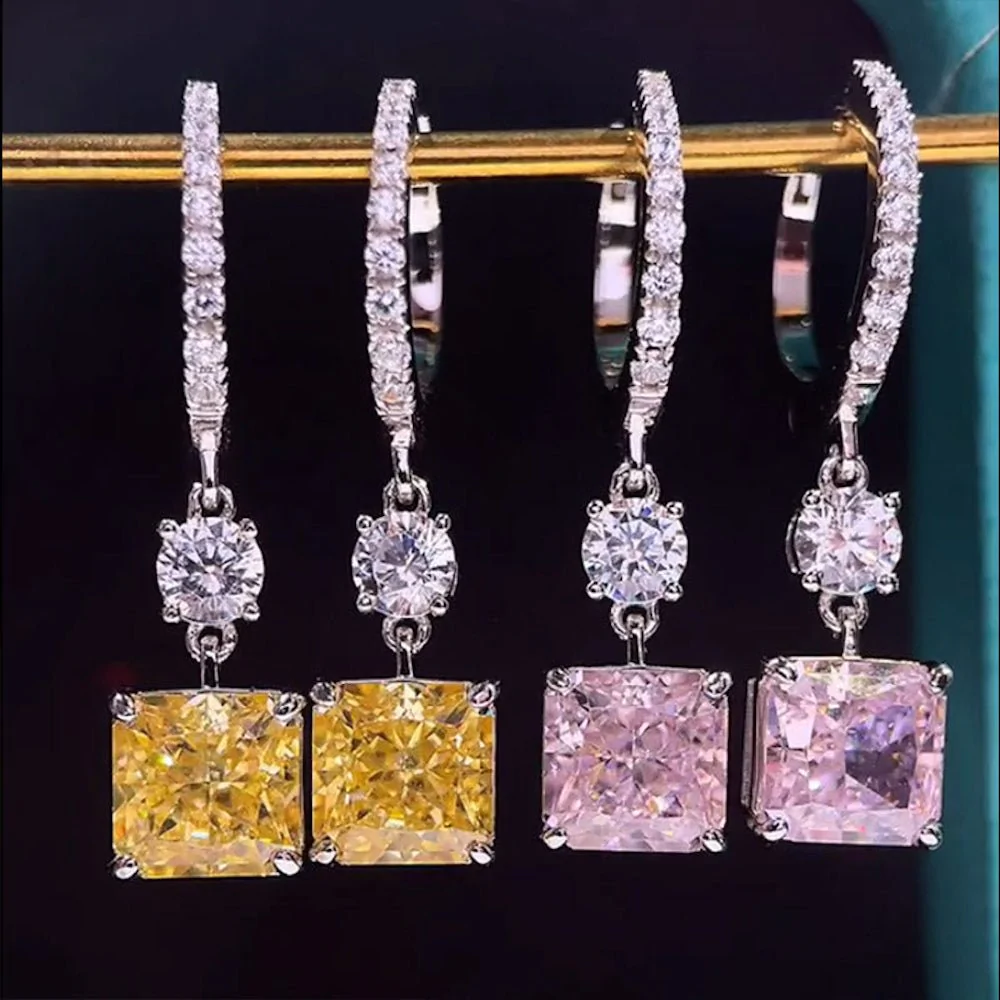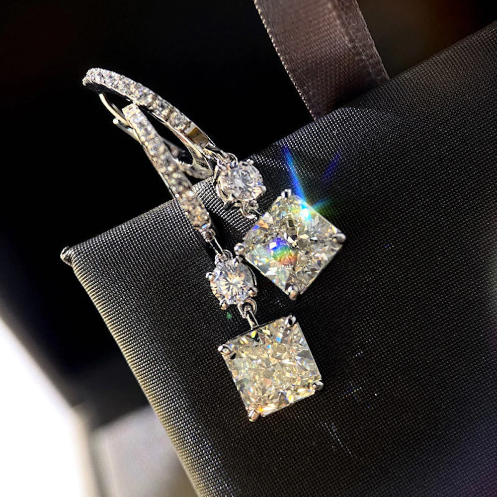 Princess Cut Shiny Drop Earrings