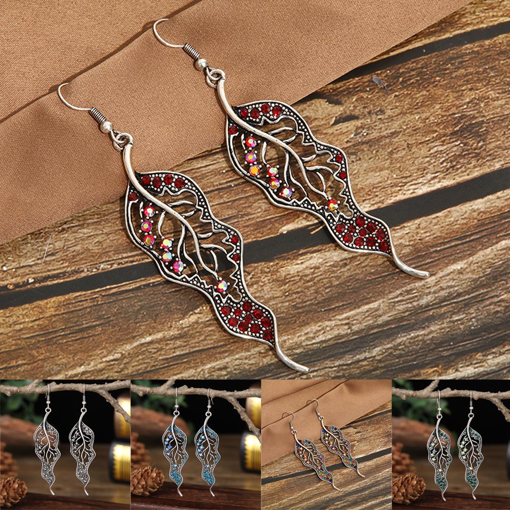 Vintage Rhinestone Leaf Earrings