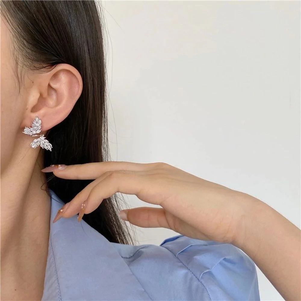 - UNIQUE DESIGN: Butterfly earrings are worth having for every woman. The Butterfly Earrings inlaid with cubic zirconia. They shine in the sunshine. Wearing these large butterfly earrings makes your match more personalized.