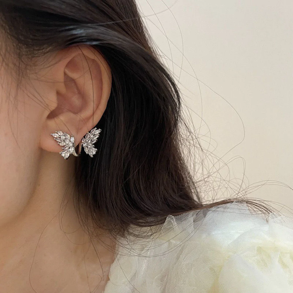 - QUALITY MATERIAL: High quality sparkling butterfly earrings. Selected cubic zirconia have the same gloss as diamond. Careful inlay makes zircon not fall off easily. S925 Sterling Silver Stud is suitable for sensitive ears. Nickel and Lead free. hypoallergenic. safe to wear. lasting color retention. harmless to your body.