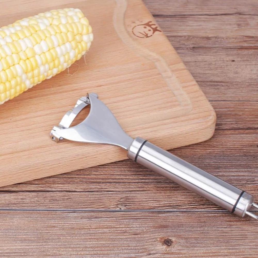 THIS STAINLESS CORN COB STRIPPER QUICKLY ADDS CORN TO ANY MEAL!