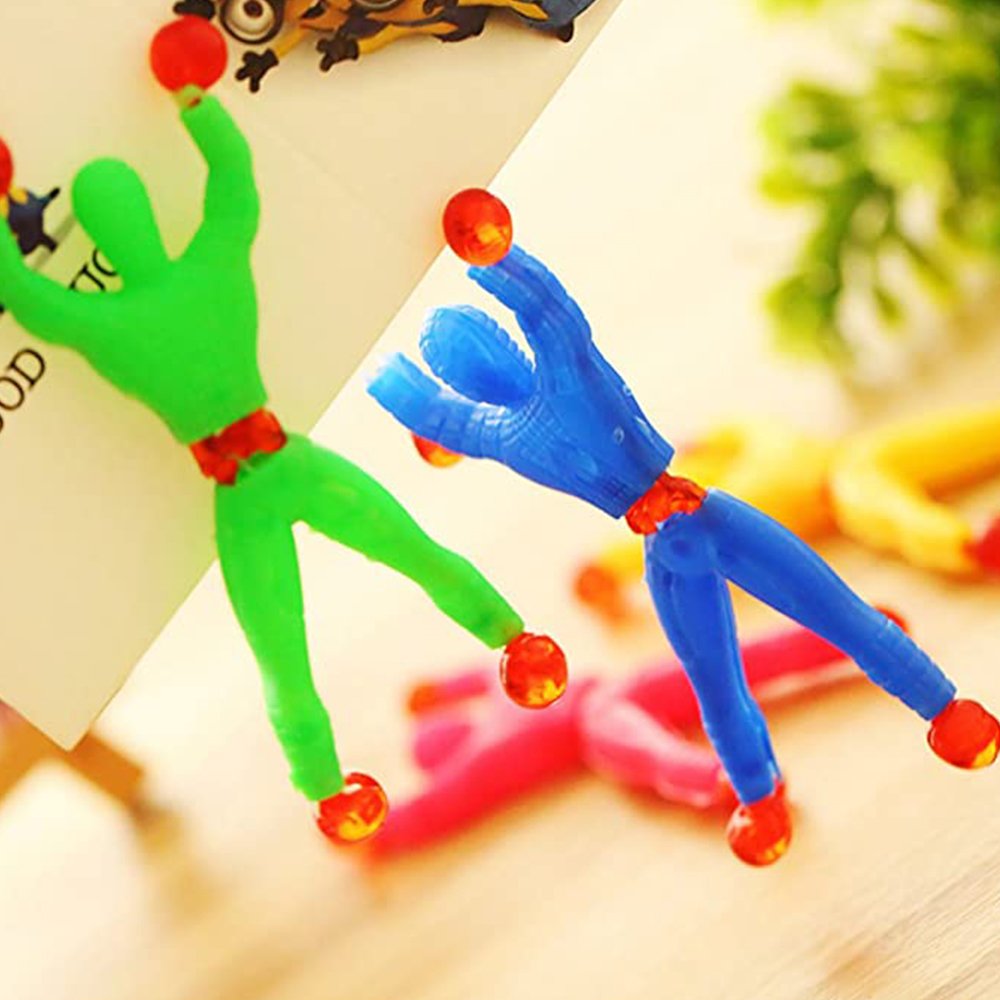• Safety material: Made of high-quality special rubber. sticky to the touch. red beads made of soft rubber at the ends of hands and feet. placed on smooth glass or wall. it will automatically roll down.