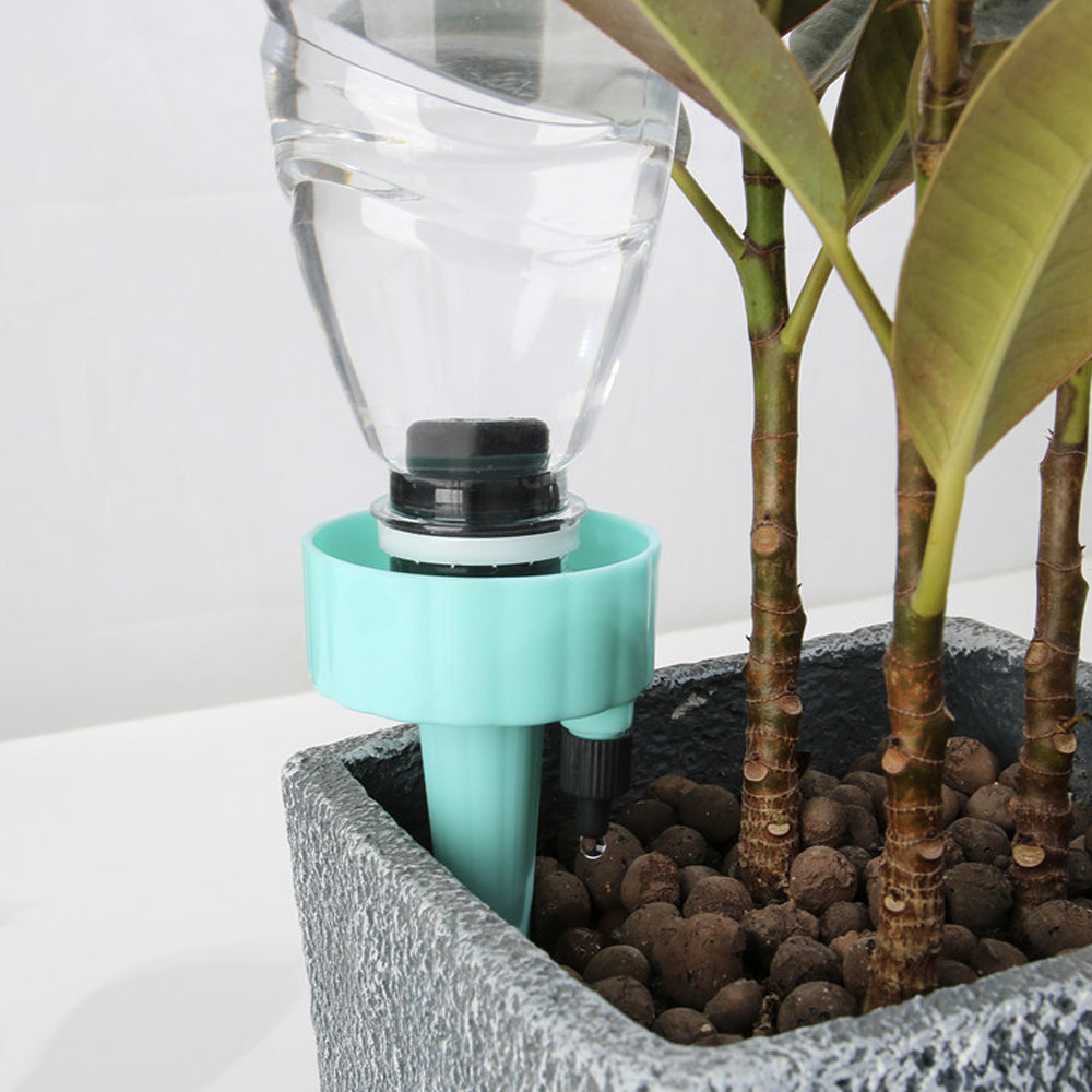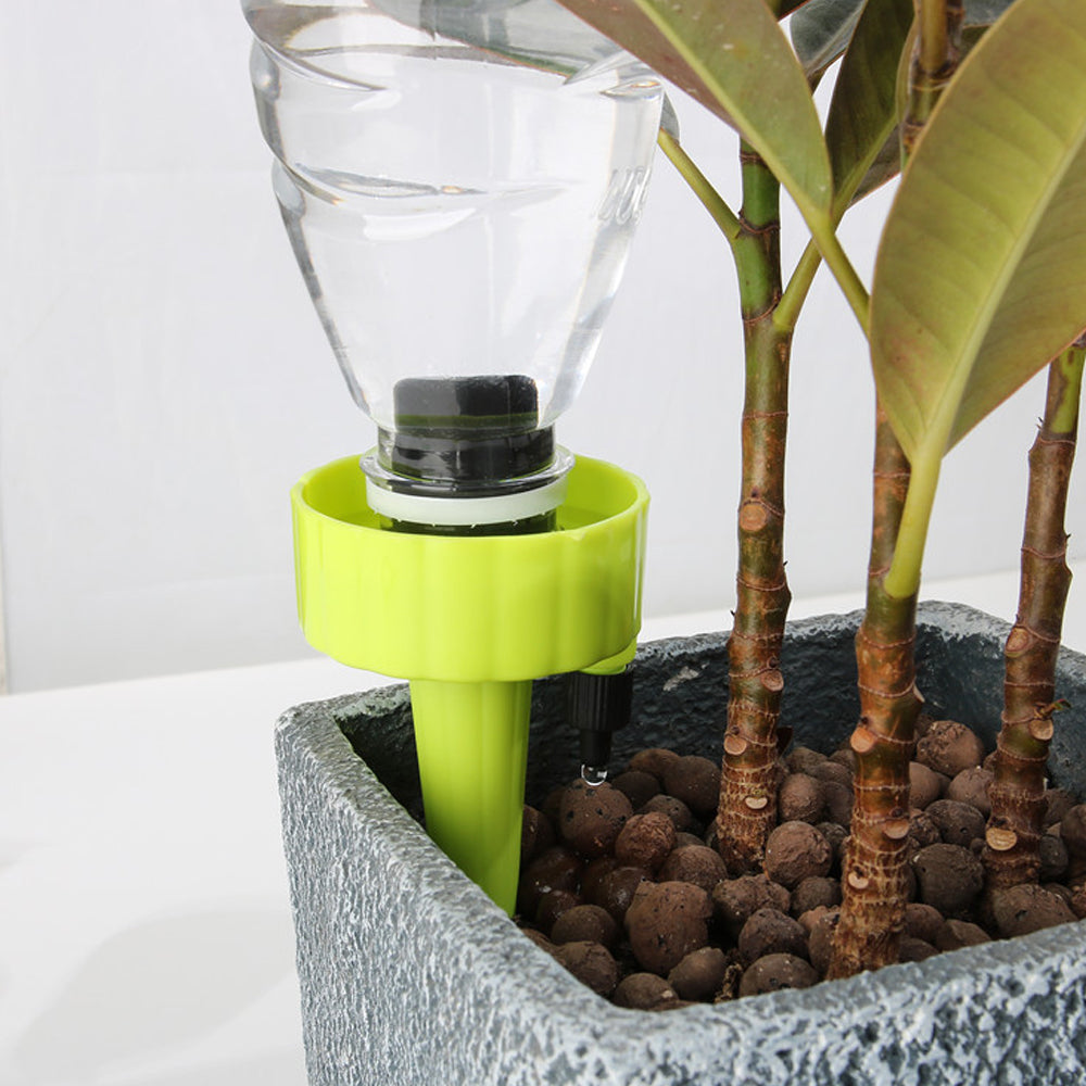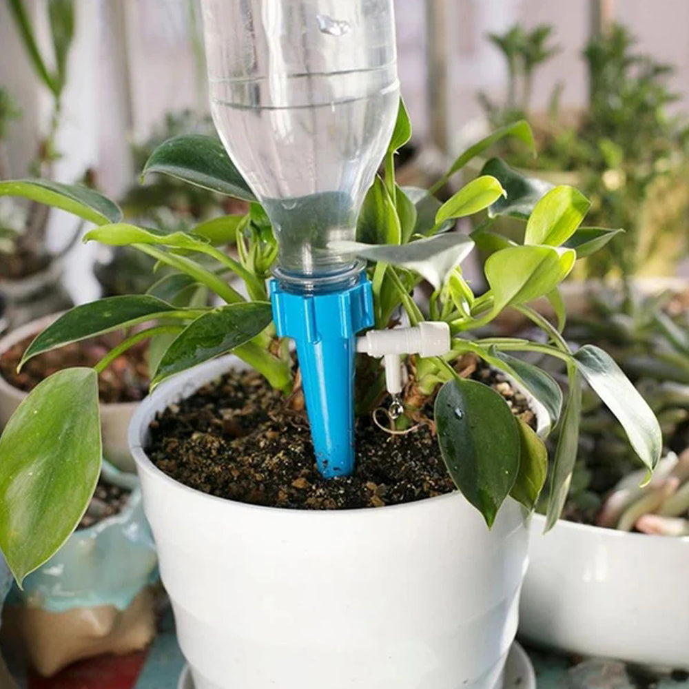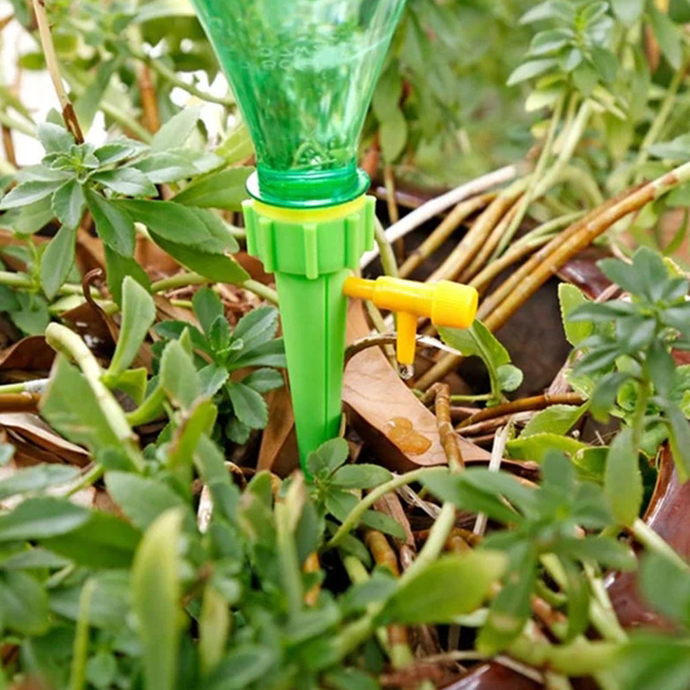 Try this product to control water flow.Insert the plastic part into the ground.Pour a bottle of water over that part.Regulate the irrigation water through the valve.It can continuously water your plants for nearly fifteen days.