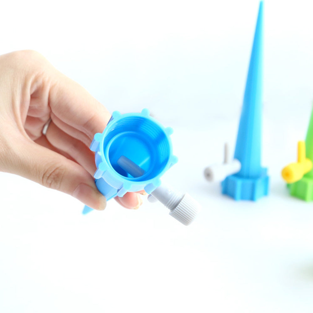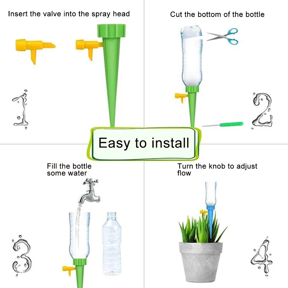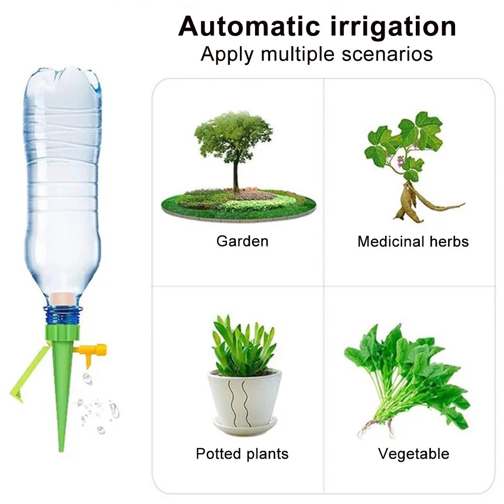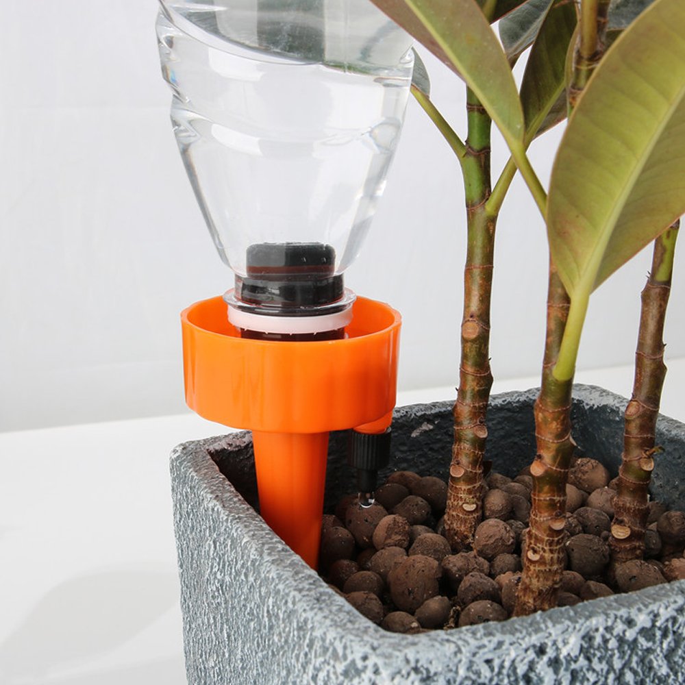 Try this product to control water flow.Insert the plastic part into the ground.Pour a bottle of water over that part.Regulate the irrigation water through the valve.It can continuously water your plants for nearly fifteen days.