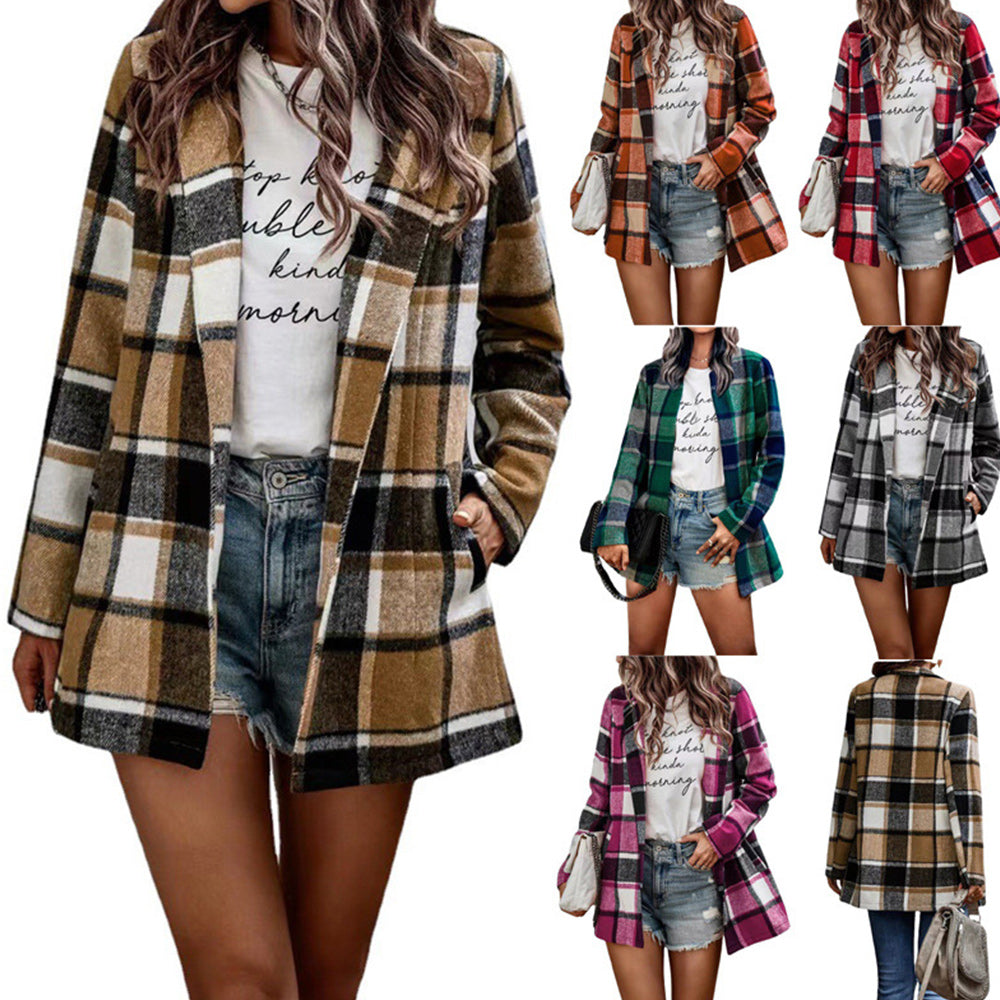 New Autumn Winter Women Warm Woolen Plaid Coat Office Lady Long Sleeve Shirt Cardigan $99.99 $54.99