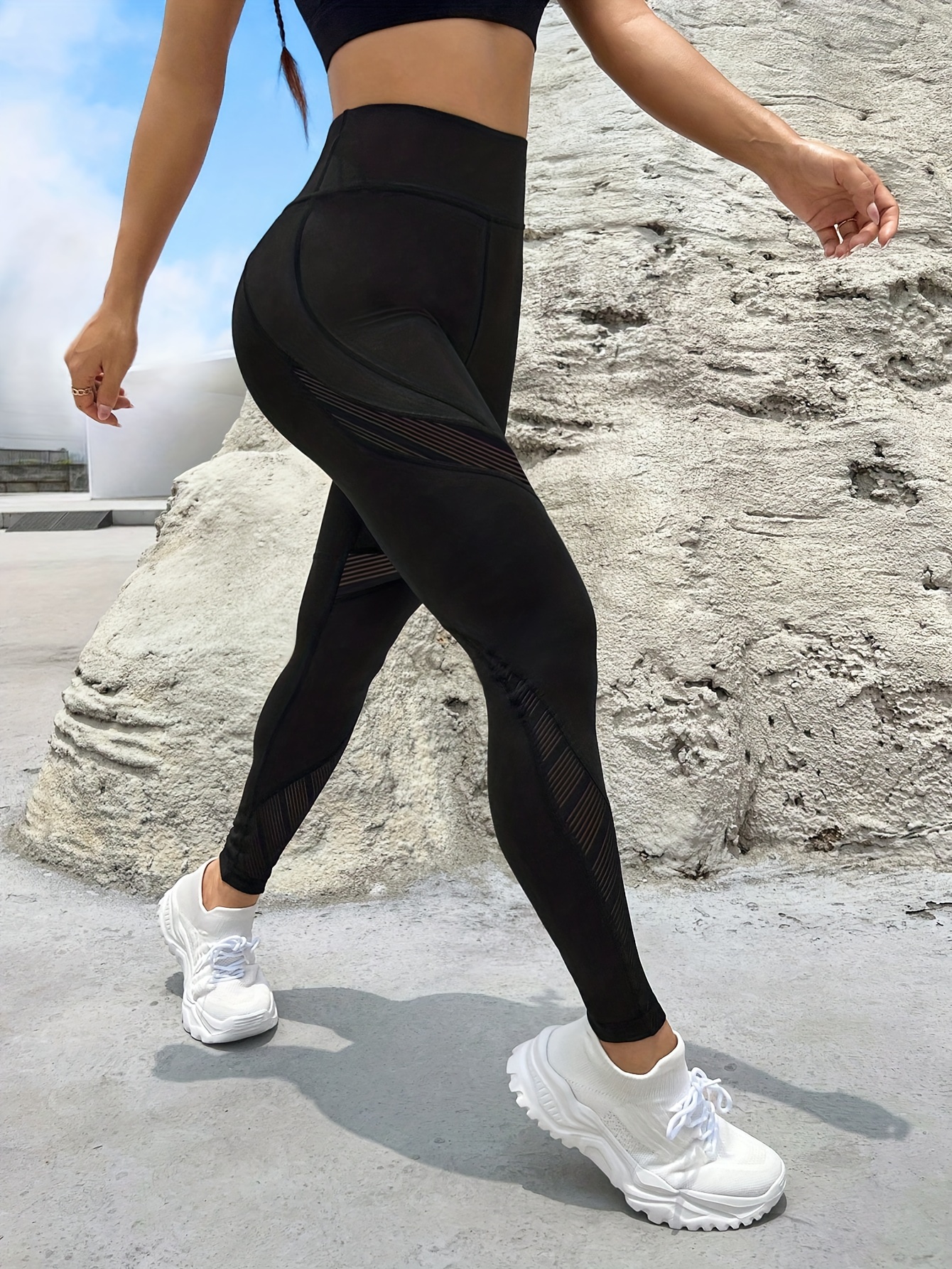 Solid Color Mesh Contrast Fitness Gym Sports Leggings, High Waist Yoga Workout Running Tight Pants, Women’s Activewear