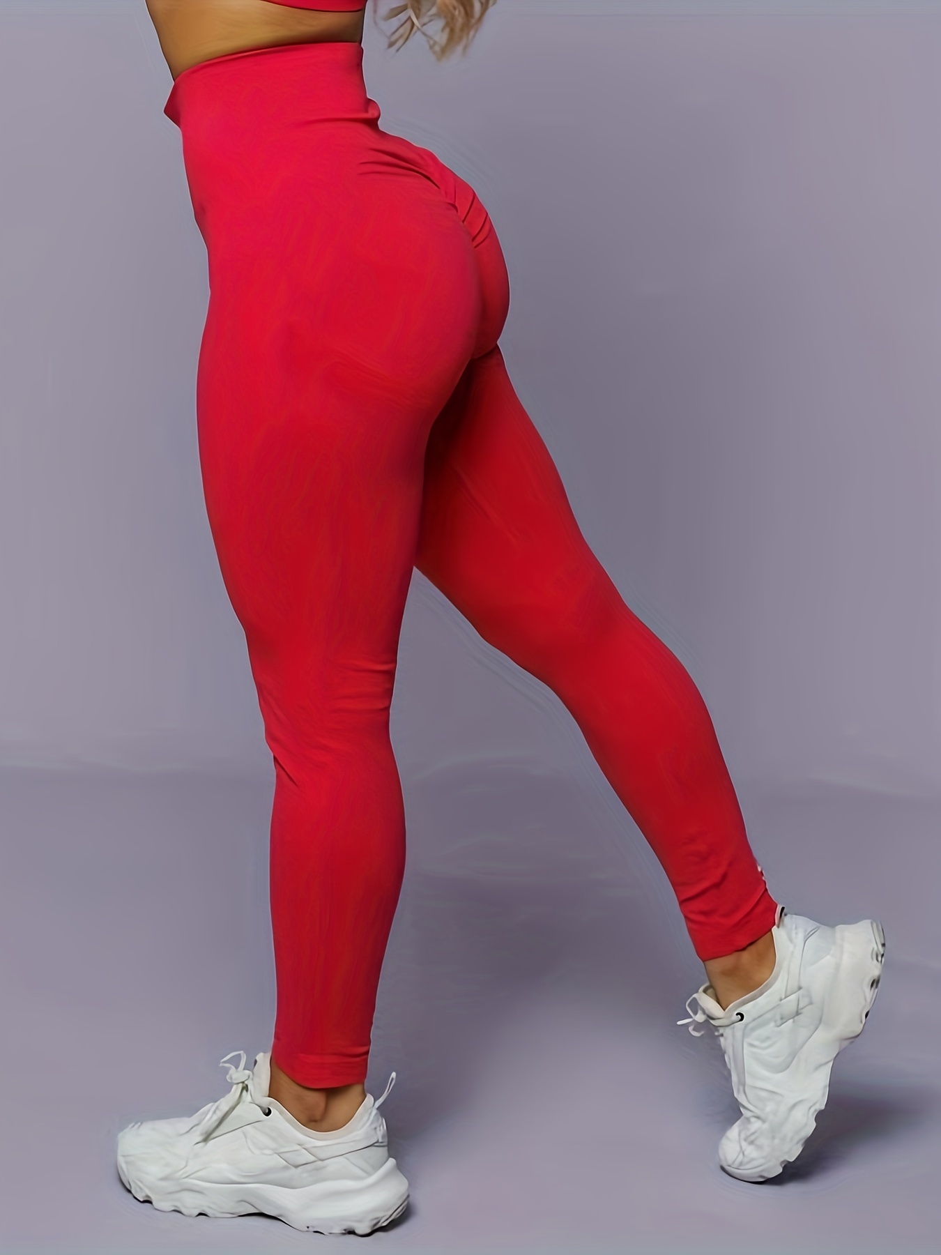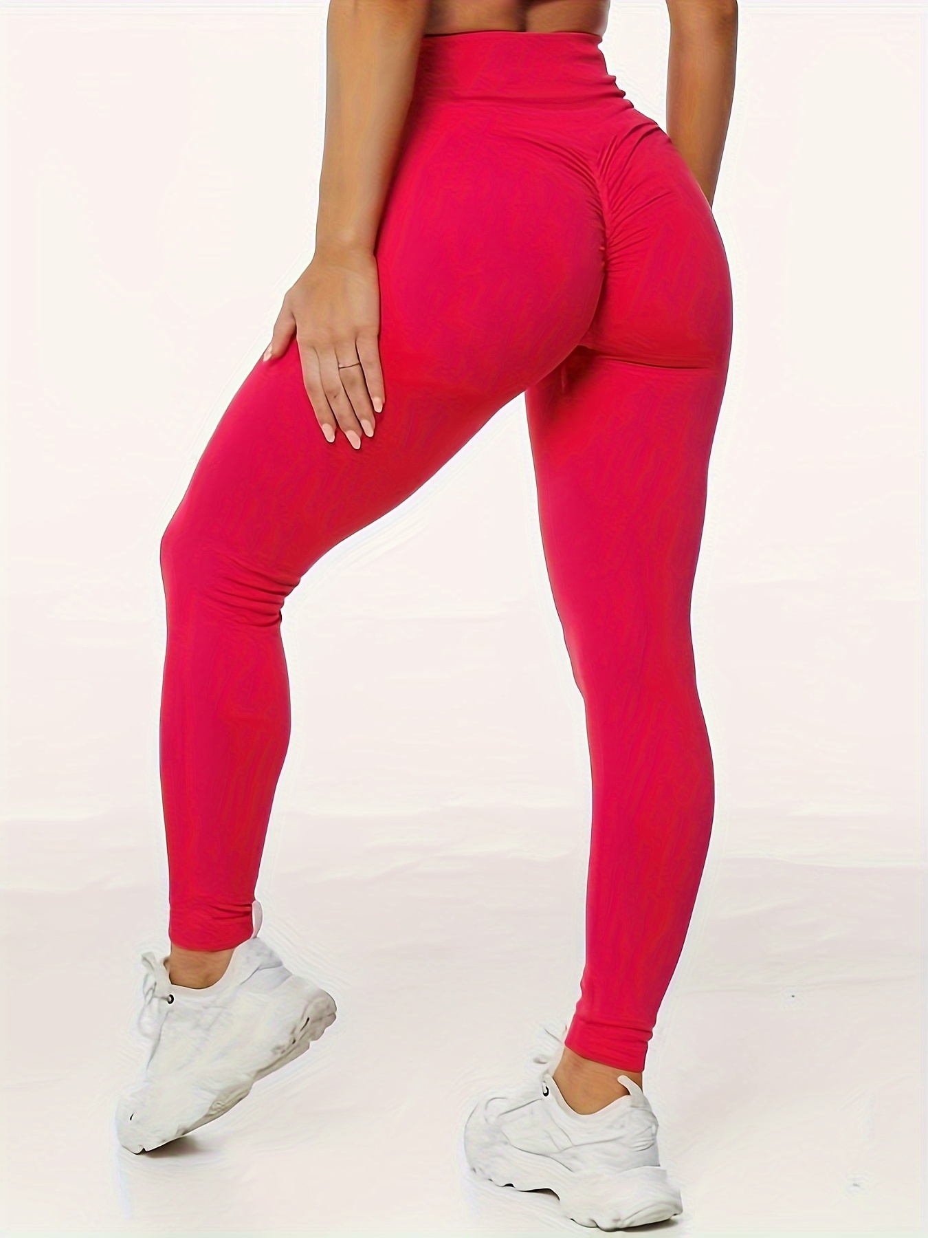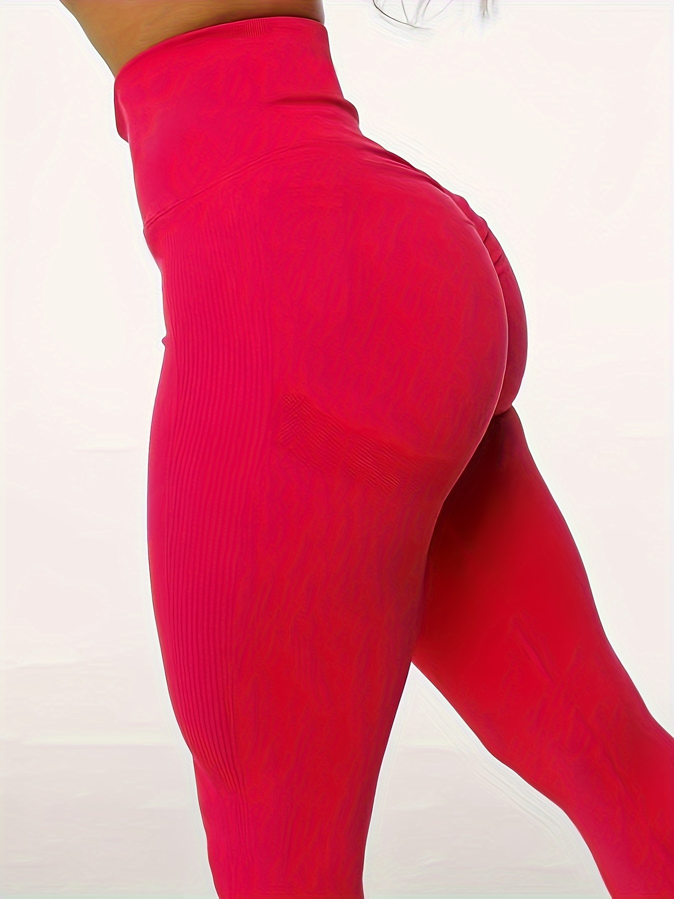 Solid Color Sports Leggings, High Waist Running Workout Yoga Fitness Tight Pants, Women’s Activewear